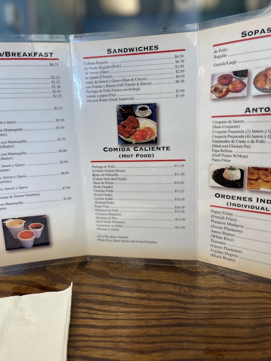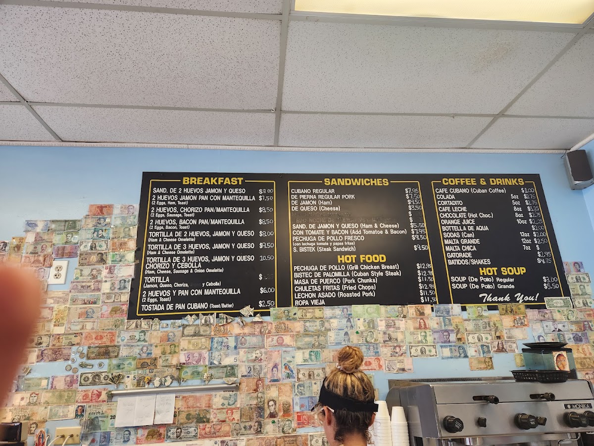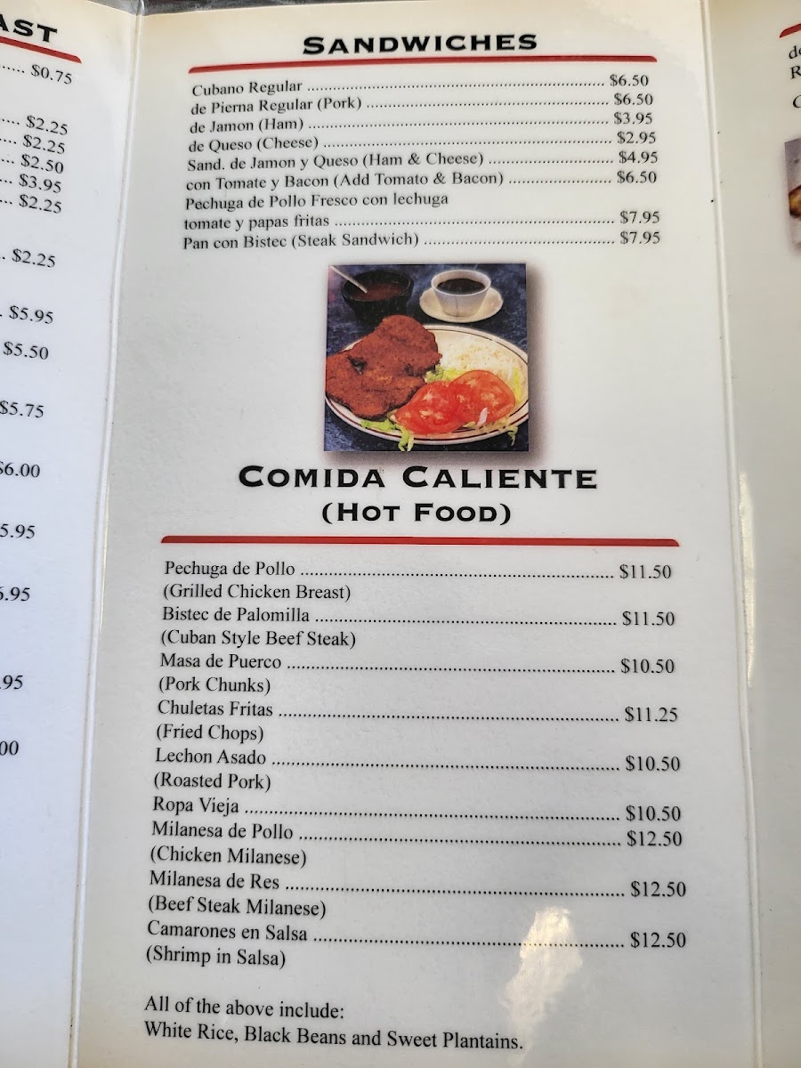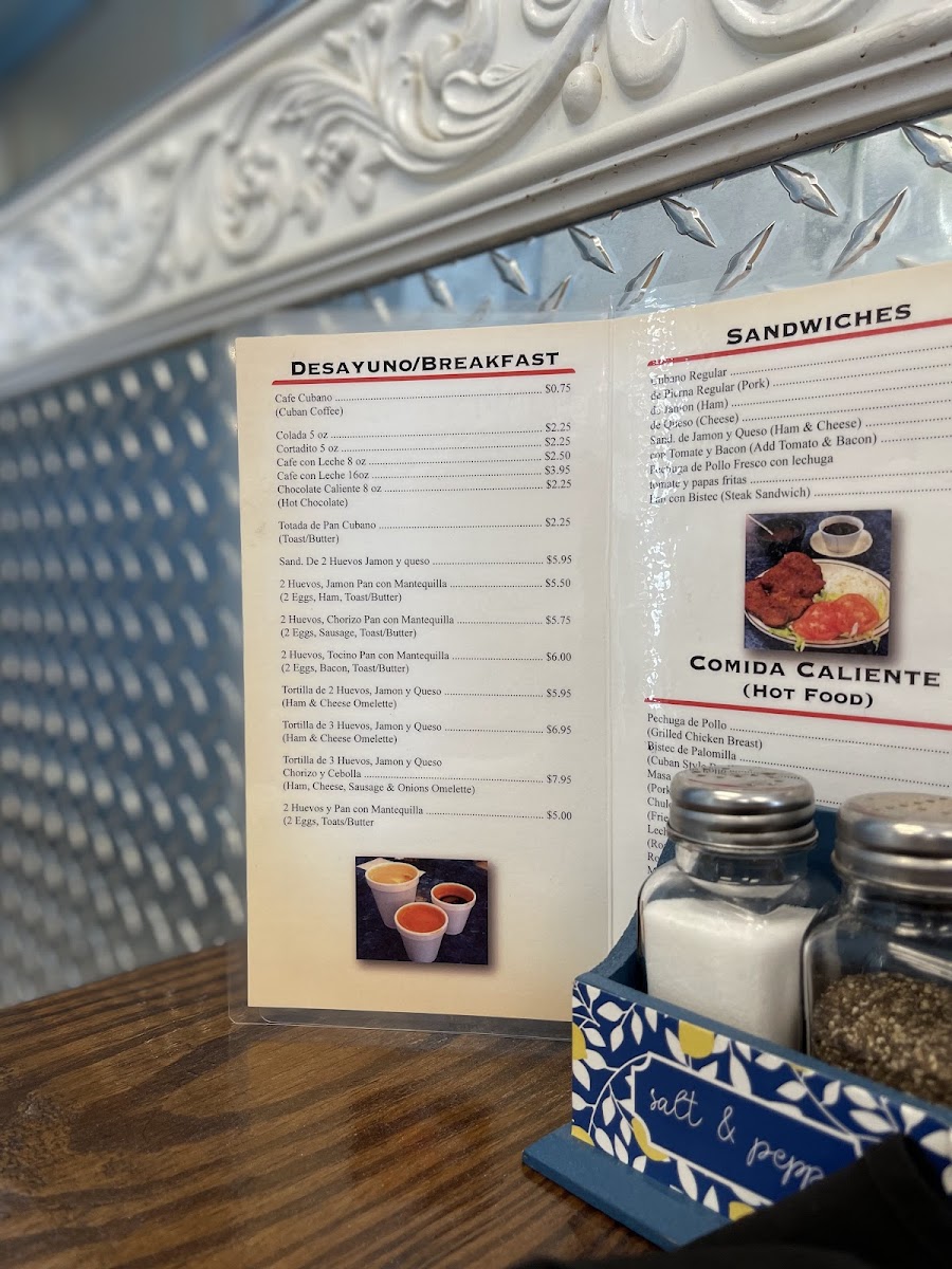 Starting with Desayuno (Breakfast), the cafe serves a classic Cafe Cubano-a rich and strong espresso that’s perfect for jump-starting your day. If you're craving something sweeter, the Colada 5 oz is a great choice, offering a bold, sweetened espresso experience. Both are essential picks for coffee lovers.
